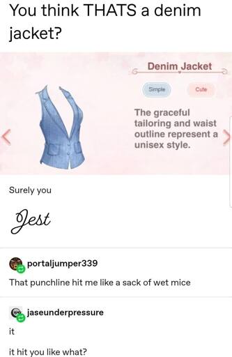 I never jest. And stop calling me Shirley.