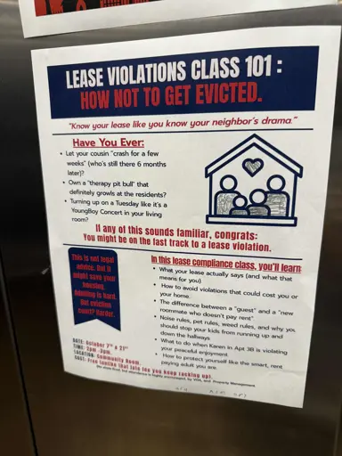 It says VOA at the bottom. Volunteers of America manages a ton of affordable and voucher-based properties around the country. Some of the people I’ve helped move into units with them have been on the streets for years and have zero living skills. A class like this could genuinely help someone stay housed who might otherwise lose their housing voucher and be back on the street