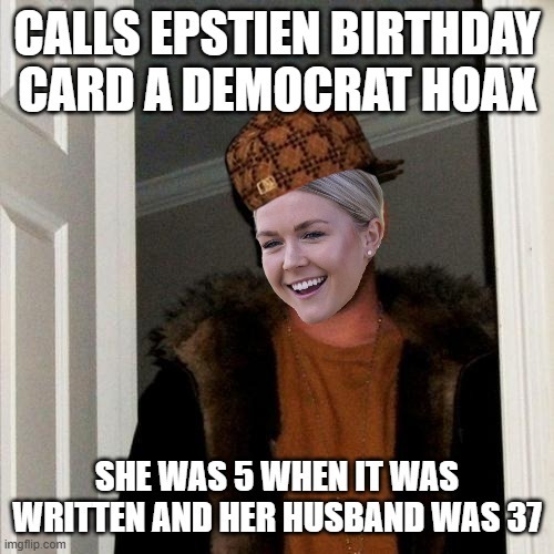 She’s the white house press secretary… aka she lies for a job. The meme is implying she has Stockholm syndrome with regards to old men grooming young women.