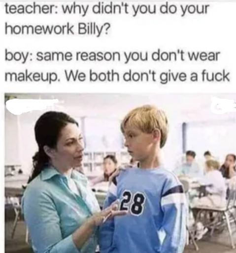 It seems to start in the teenage years for women. They are surrounded by ads for various make up things that they don’t need. Some have acne issues which sets them on the road to make up everyday. Yeah make up is nonsense. But the shitpost was about not giving a fuck, not make up