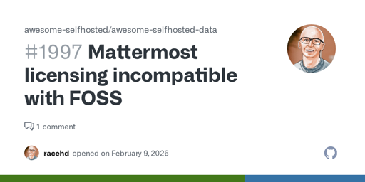 Overall, I’m not convinced that Mattermost is a well run project, foss or not. Major changes in direction smack of poor roadmapping and leadership. It would not surprise me at all if the licence issues in the post turned out to be accidental rather than deliberate.