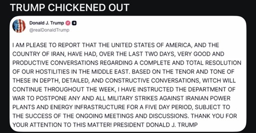 WanderWisley@lemmy.world to Political Memes@lemmy.world · 28 days agoTACO!lemmy.worldimagemessage-square59fedilinkarrow-up1370arrow-down11