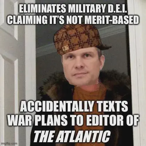 FoxtrotDeltaTango@sh.itjust.works to Political Memes@lemmy.world · 3 days agoDUI hiring just workssh.itjust.worksimagemessage-square18fedilinkarrow-up1307arrow-down112file-textcross-posted to: politicalmemes@lemmy.worldnoncredibledefense@sh.itjust.works