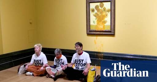 Three supporters of Just Stop Oil walked into the National Gallery in London, where an exhibition of Van Gogh’s collected works is on display, at 2.30pm on Friday afternoon, and threw Heinz soup over Sunflowers 1889 and Sunflowers 1888.