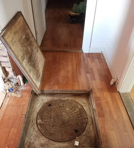 Men det her er tydeligvis en konverteret kælder. Som nok ikke burde have været konverteret. Om brønden så er kloak eller en grundvandsbrønd med en pumpe som sender vand ud i kloakken det ved jeg ikke.