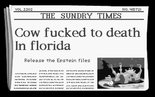 Epstein’s cow-nterpart, Jeffriesian Holstein, was found deceased alone in his solitary pen earlier. Initial reports noted the presence of feathers scattered across the scene but investigators have dismissed suggestions of fowl play as unfounded, concluding that Holstein’s death was an unfortunate case of bovine intervention.
