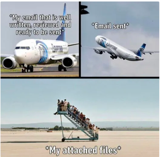 Doing the recipients last in particular gives you that extra few seconds to consider all the other elements so you can realize and correct any mistakes before hitting send. I used to do shit like send w/o attachments or send to the wrong/not all of the intended recipients all the time, but following the same order has basically idiot-proofed it against myself.