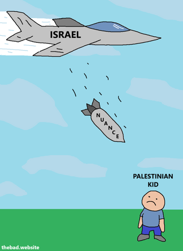 Out of my dozen of comics and memes unambiguously criticizing Israel, this is the only one doing what you are complaining about.