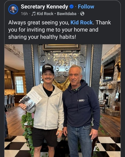 arrow-up185arrow-down1imageWhat are some of Kid Rock's healthy habits? lemmy.worldickplant@lemmy.world to Political Memes@lemmy.world · 4 hours agomessage-square19fedilink
