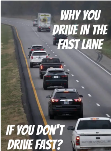 It’s curious you’re so concerned about the speed limit but so flippant about breaking another clearly stated law about how you’re supposed to operate your vehicle.