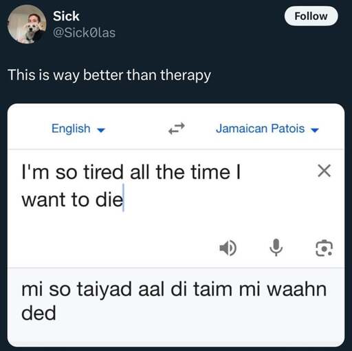 arrow-up1679arrow-down1imageA Jamaican accent just makes me smilelemmy.worldpotoooooooo ✅️@lemmy.world to Lemmy Shitpost@lemmy.worldEnglish · 1 month agomessage-square61fedilink