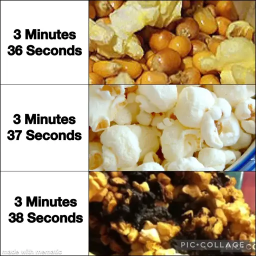 The real trick is to actually read the god damn directions, which tell you to not let the time go all the way and stop the process once the kernels are popping longer than 1 second apart. If, once it starts popping, 1 full second goes by without a pop, it’s done.