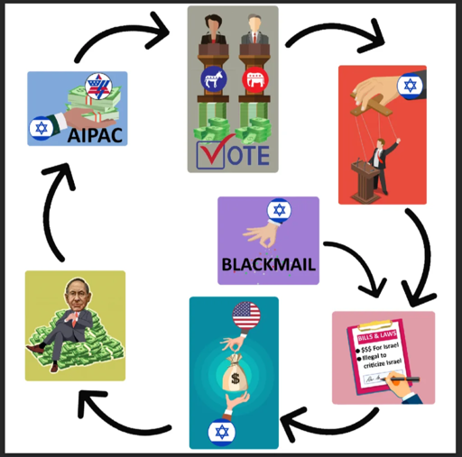 Ah yes, Israel puppeteering politicians and bathing in money. I am sure these antisemitic dog-whistles are just used as “”“Anti-Zionism”“” again.