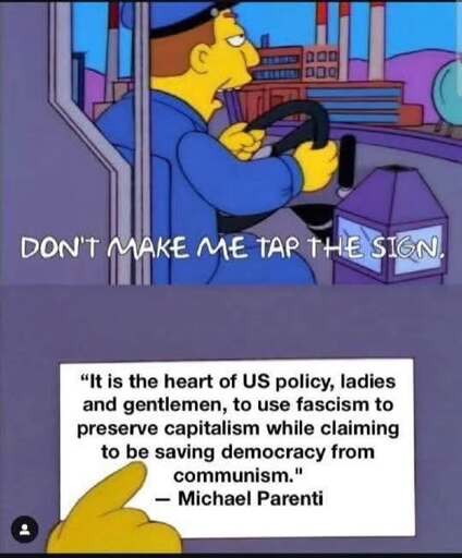 It is the heart of US policy, ladies and gentlemen, to use fascism to preserve vanguard communism? Huh?